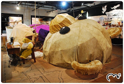 在展區的中間~還有一隻正在被縫製的大大大泰迪熊呢!